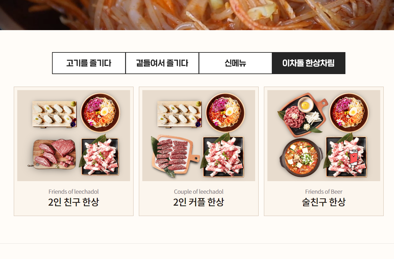 이차돌 메뉴 소개해드릴게요.